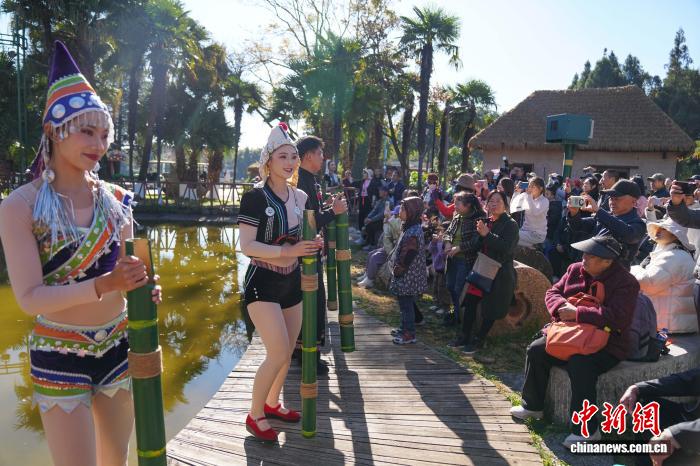 图为真景表演为旅客闪现哈僧族农耕文明。中新社记者 刘冉阳 摄