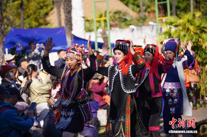 图为真景表演为旅客闪现哈僧族农耕文明。中新社记者 刘冉阳 摄